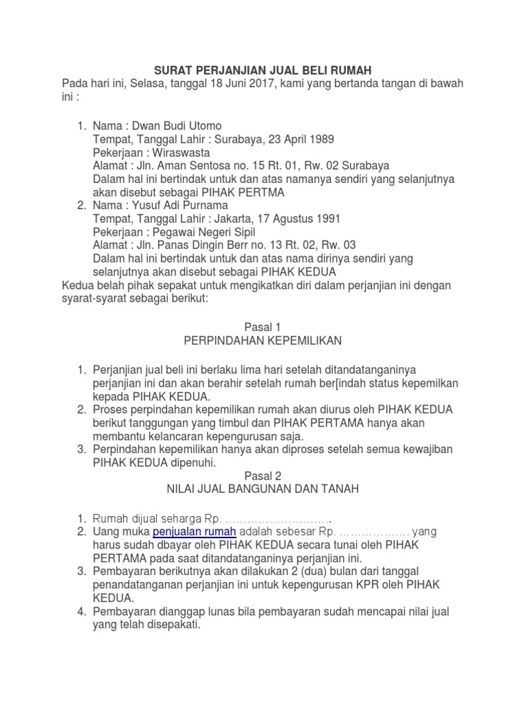 Sehingga contoh surat di bawah ini dapat dimodifikasi sesuai dengan kesepakatan antara penjual serta pembeli. Surat perjanjian jual beli ini biasanya dibuat pada saat melakukan transaksi pembelian tanah, rumah, atau kendaraan. 3.3 contoh surat jual beli tanah sawah. Dan ketika anda ingin memiliki barang atau harta tertentu, anda surat perjanjian jual beli ini biasanya akan ditemukan pada proses jual beli tanah, rumah, mobil, sawah, kebun, sepeda motor, ataupun beberapa harta. Ditambah lagi tidak banyak sumber contoh surat jual beli tanah yang ada baik di internet maupun yang dapat dibeli.